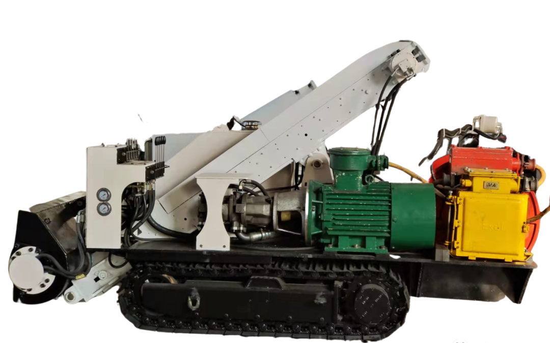 螺旋收集部采用液壓馬達驅(qū)動,安全可靠,裝載效率高;機體方便拆卸、運輸、穩(wěn)定性高;履帶行走,機動靈活,爬行能力強;轉(zhuǎn)載部可向左、右各90°旋轉(zhuǎn),實現(xiàn)落煤點無死角;冷卻方式采用風(fēng)冷,這種風(fēng)冷方式結(jié)構(gòu)簡單、體積小、重量輕、熱阻小、換熱面積大、 使用安裝方便、它的散熱效果較高。